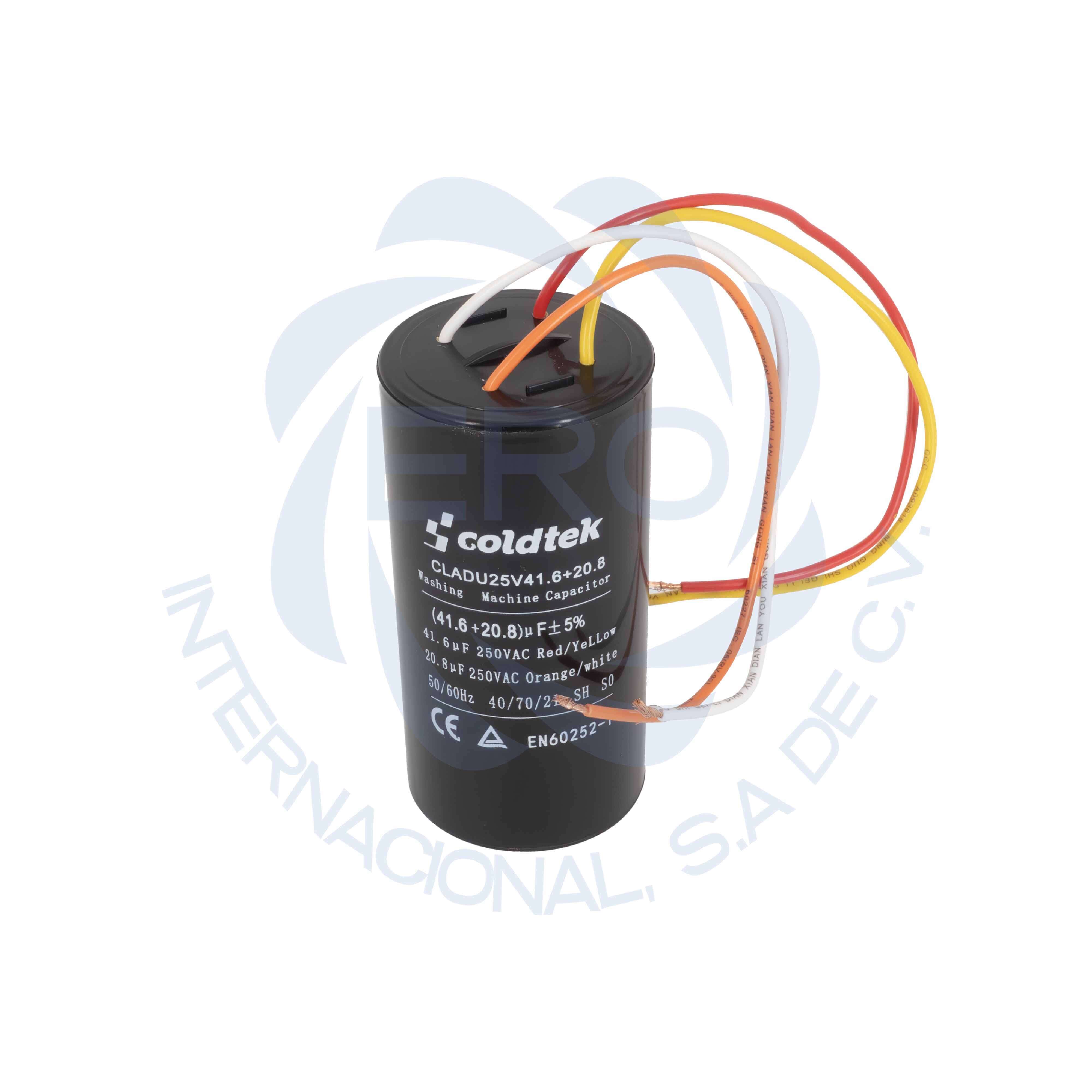 Capacitor de trabajo dual para lavadora 41.6uF + 20.8uF COLDTEK