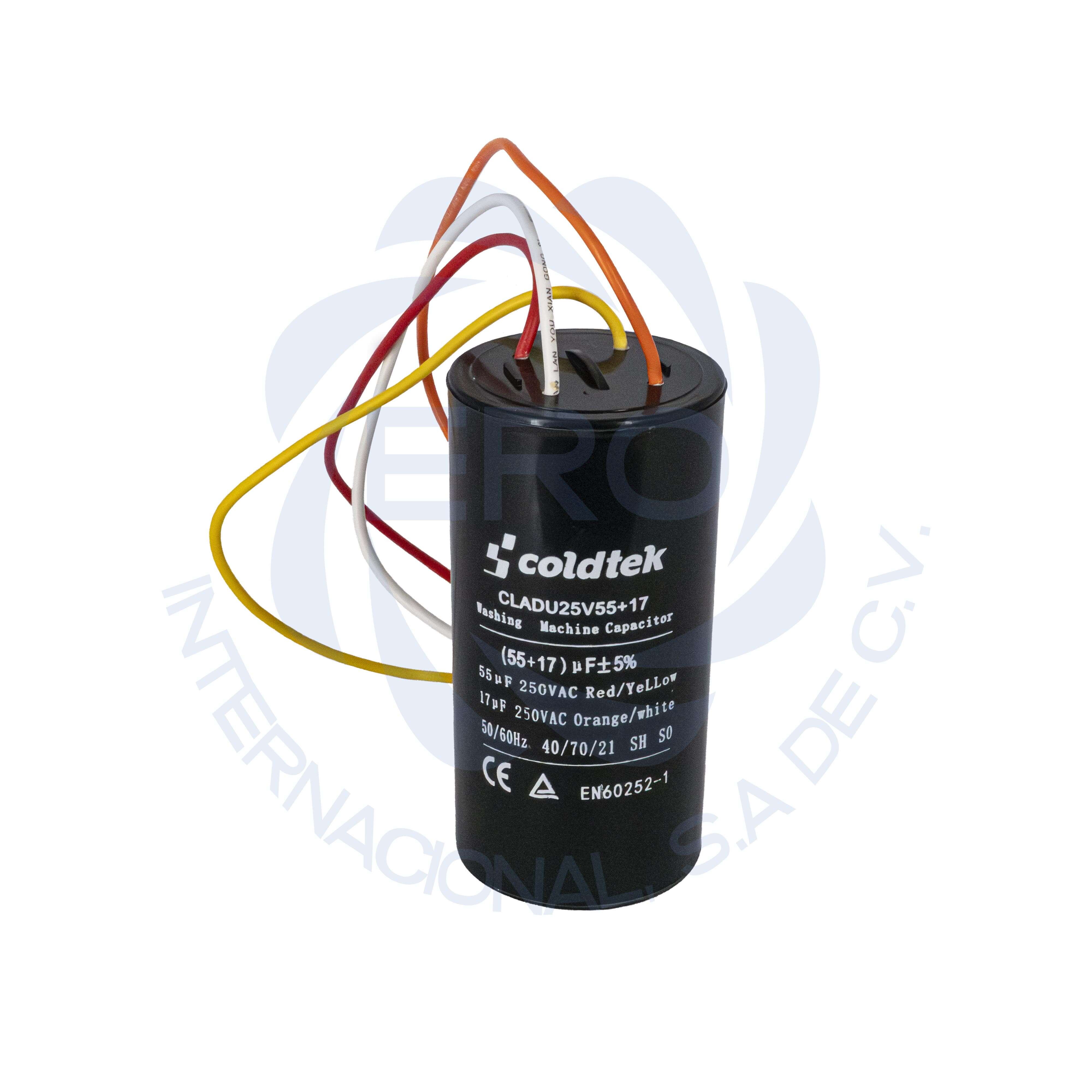 Capacitor de trabajo dual para lavadora 55uF + 17uF